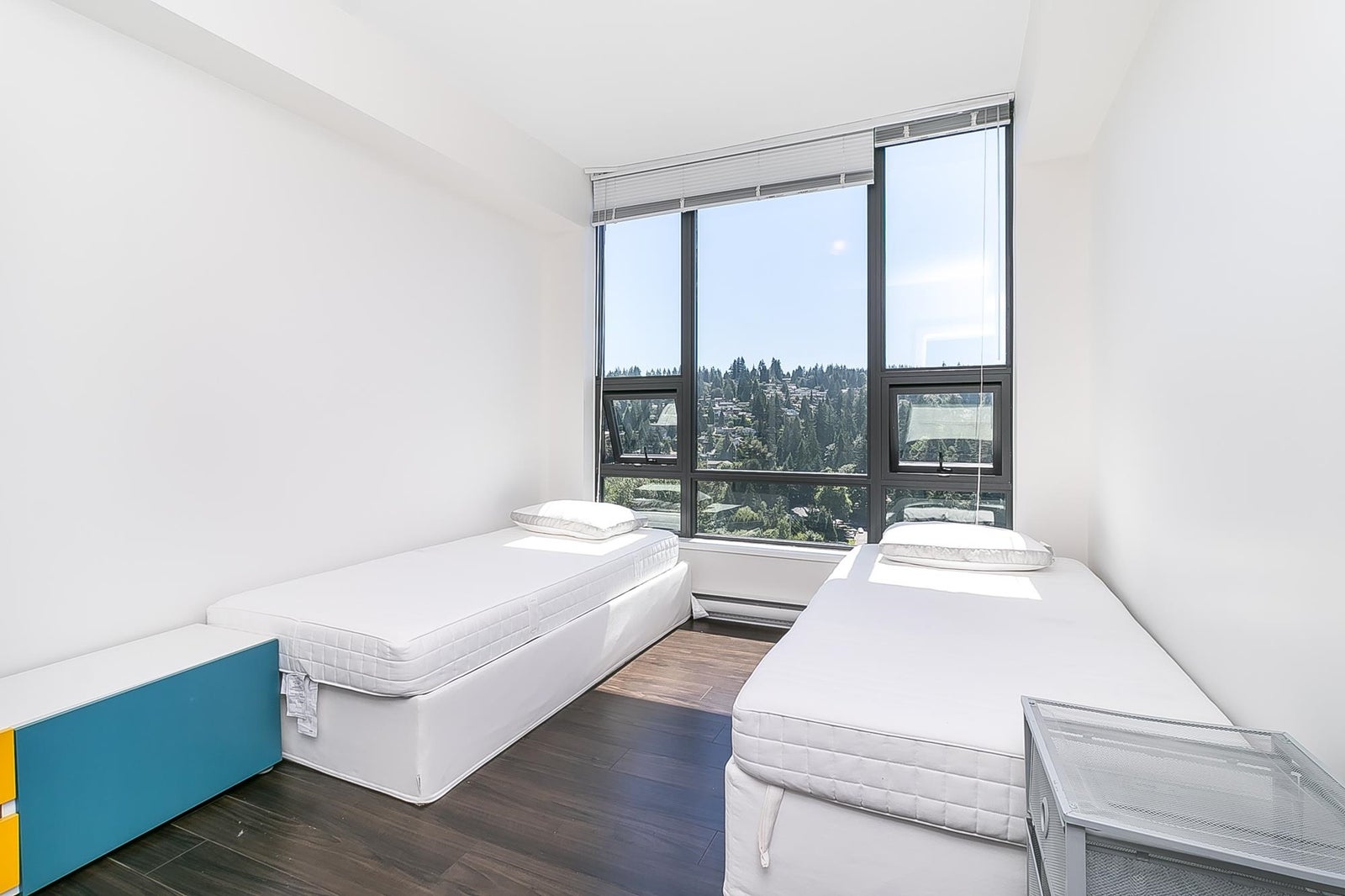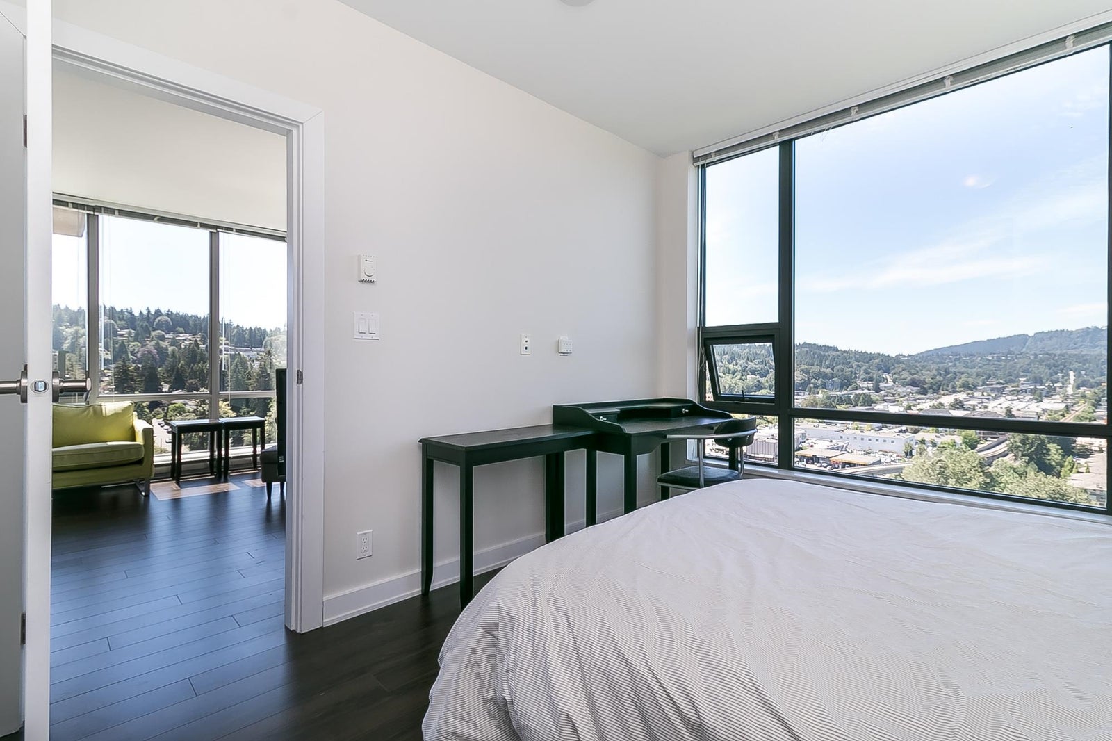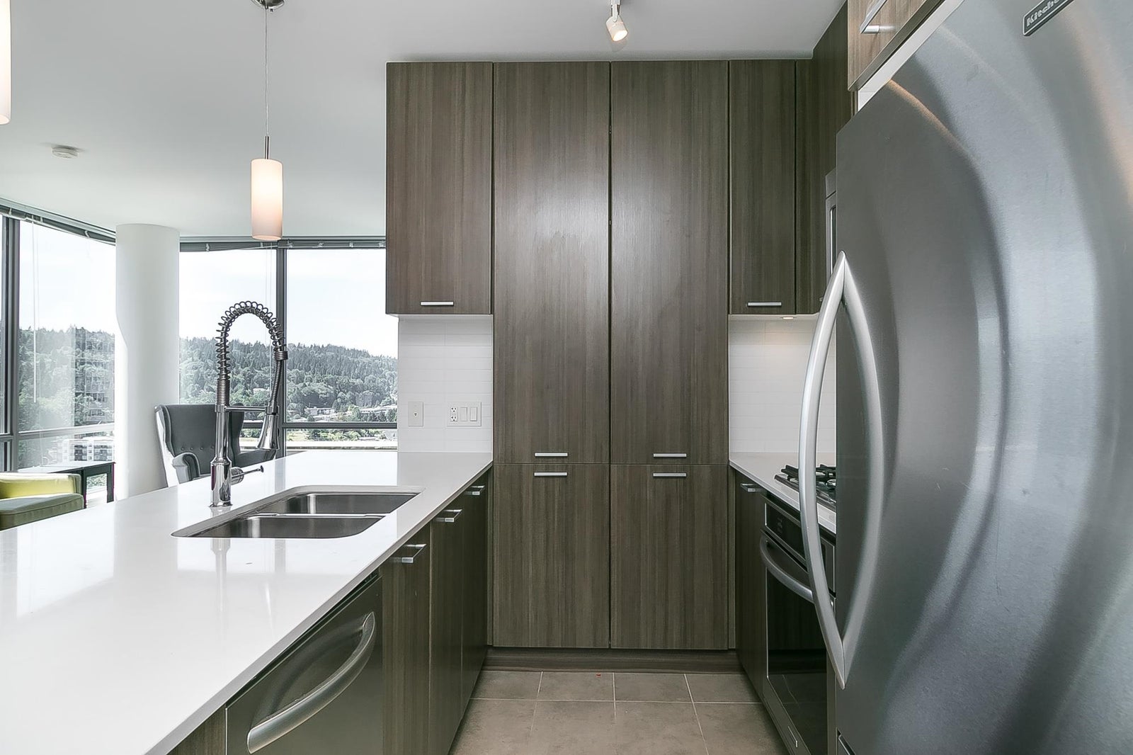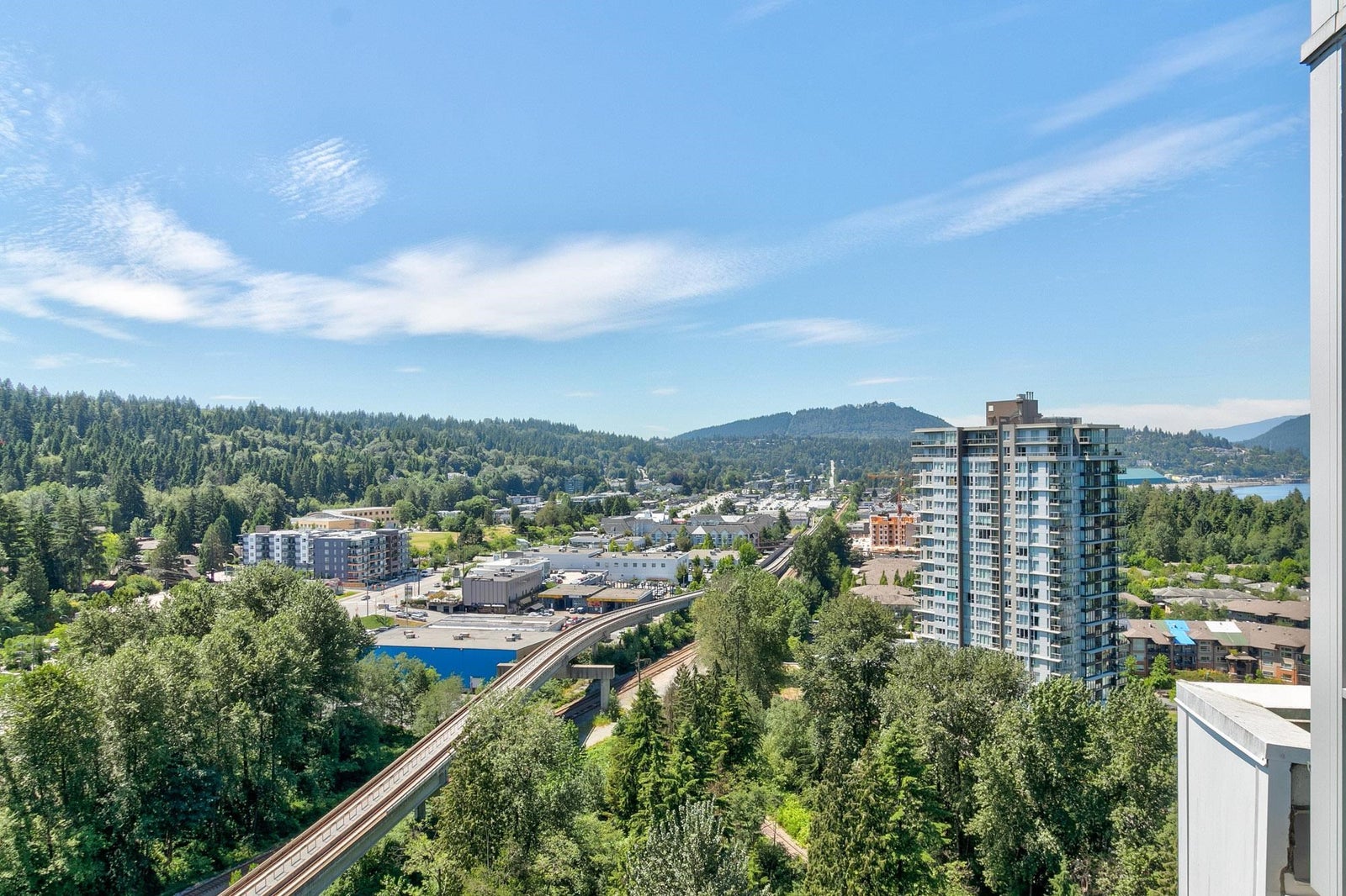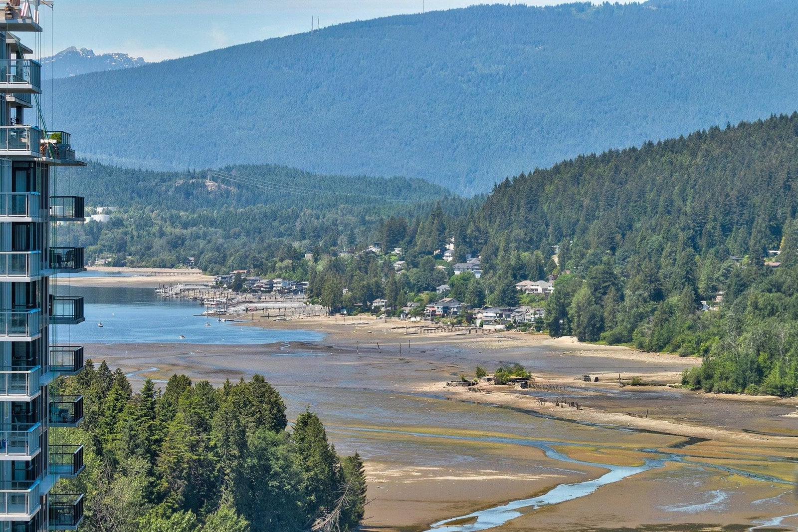 Amazing views of Port Moody Inlet and the Mountains! Tastefully updated on the 22nd floor, this 2-bed & 2 bath boasts some amazing views of the Inlet and the North Shore Mountains. Built in 2012, this unit was designed with high ceilings & a large floor plan, feeling as if you are living in the clouds. The open kitchen with large breakfast bar is finished with quartz countertops, stainless appliances and LED lights. The building has great amenities, including a gym, yoga room, sauna, steam room, tennis & basketball courts, fenced-in dog park, lounge, media room & party room. steps from all that Suter Brook Village has to offer, Rocky Point Park, Brewers Row, walking trails, Skytrain and walking distance to all Port Moody Festivals! This is where you want to be. Call today to view.