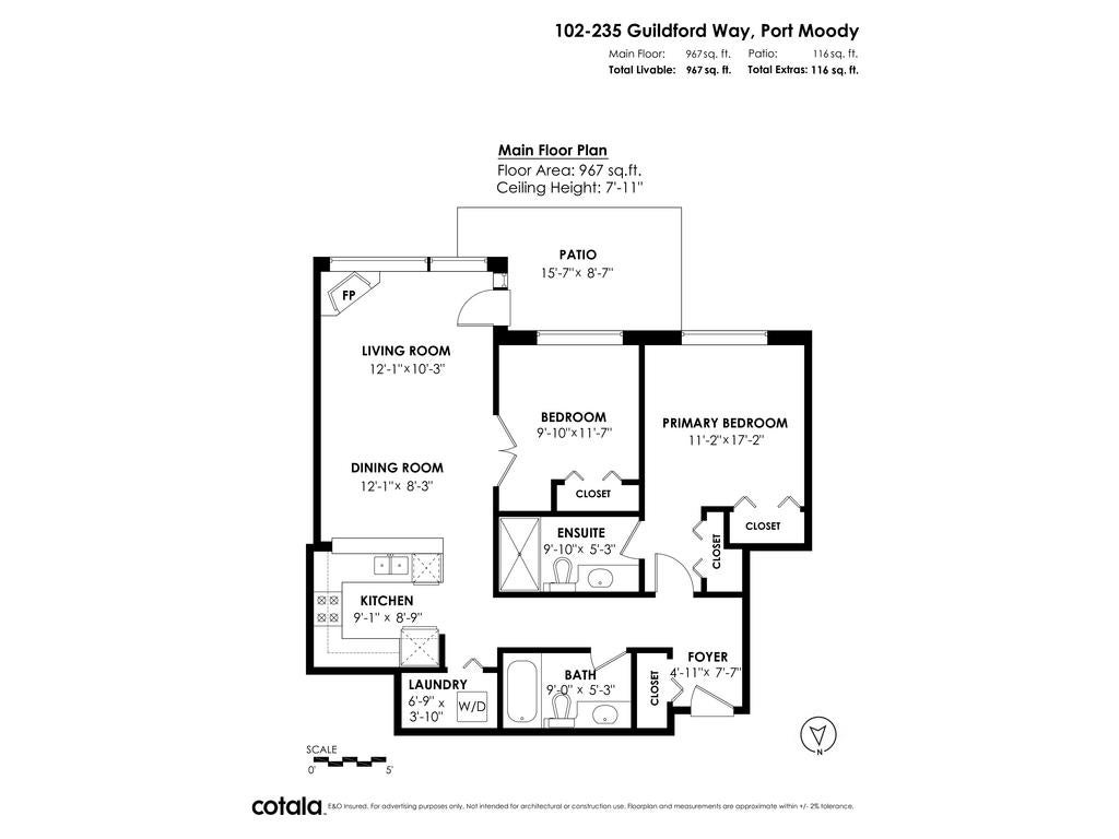 This beautifully maintained 967 square foot, 2 bedroom, 2 bathroom, ground-level condo in The Sinclair at Newport Village offers an open-concept layout, a modern kitchen, laminate flooring throughout, a spacious primary bedroom with a walk-in closet and luxurious ensuite. Enjoy the private patio with direct access to landscaped grounds! 1 parking and 1 storage locker included. Enjoy the convenience and lifestyle of Newport Village which is located steps from boutique shops, restaurants, and the Evergreen SkyTrain line/WCE. This condo offers unmatched value and lifestyle with an extremely proactive strata and great building!
