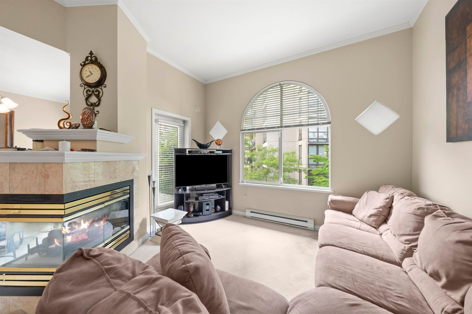 Spacious and bright TOP FLOOR unit featuring 10’8” vaulted ceilings in the living room, a functional open-concept layout, and a huge 126 sqft patio overlooking the quiet courtyard. This 1 bed, 1 bath home offers a large primary bedroom, gas fireplace, and plenty of natural light—ready for your finishing touches. Centrally located just steps to Coquitlam Centre, SkyTrain, Lafarge Lake, Douglas College, and endless shopping and dining options. 1 secure parking + 1 storage locker included. A fantastic opportunity for first-time buyers or investors!