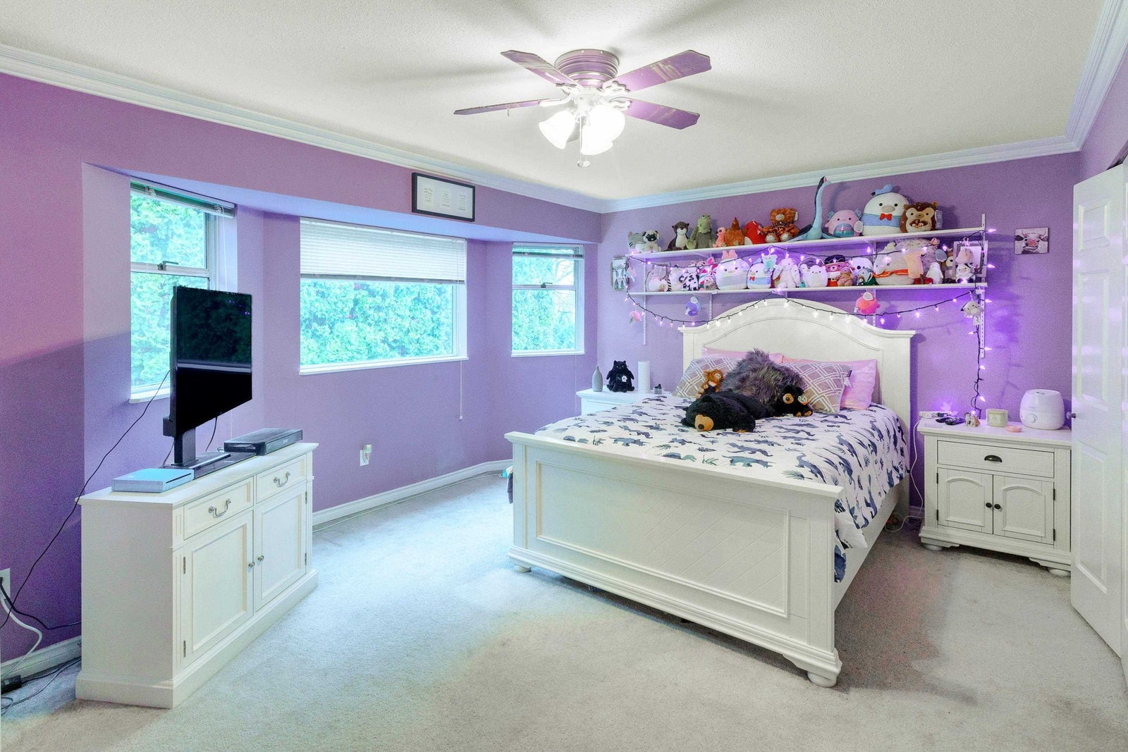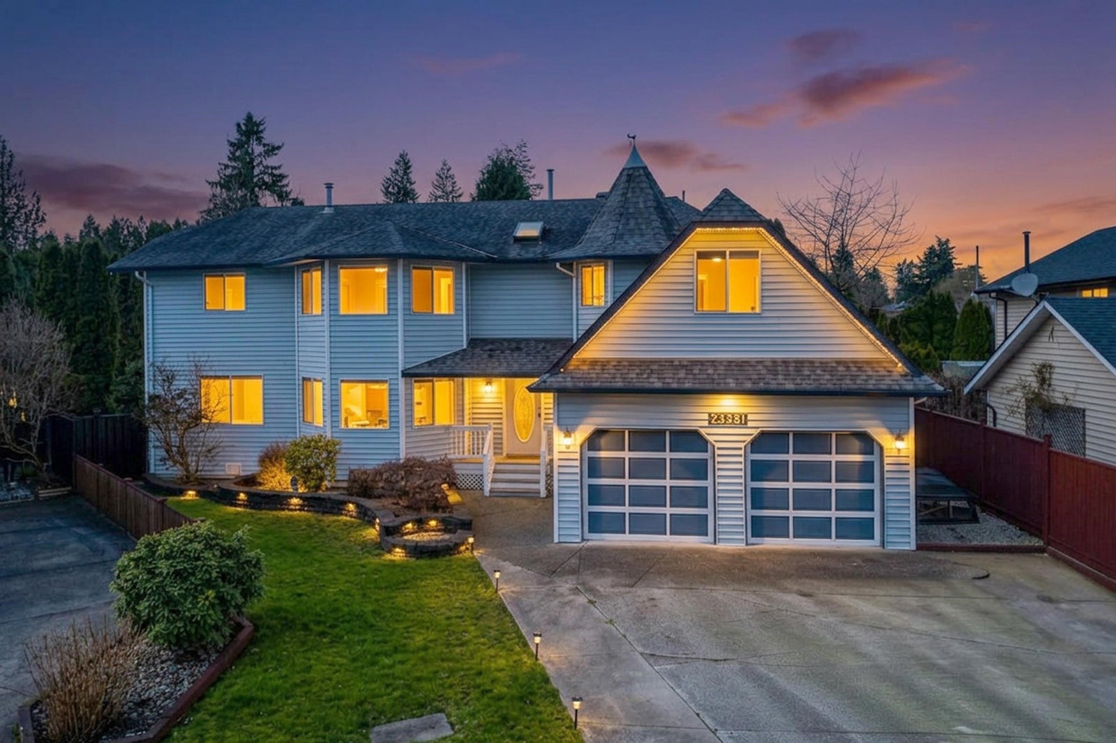 Spacious and unique family home with a desirable “bedrooms up” layout! Generous room sizes throughout, including oversized bedrooms and a large primary suite with walk-in closet/ dressing room and a huge ensuite with soaker tub, separate shower and water closet. Bright kitchen offers ample cabinetry, plenty of counter space, and a bayed breakfast nook. Formal dining room with French doors is perfect for entertaining, plus a separate family room with cozy wood-burning fireplace. Bonus conservatory ideal for plant lovers or hobbies. Double garage features an extra-deep third bay with rear yard access. Situated on a quiet, private cul-de-sac with mature hedging and RV parking.