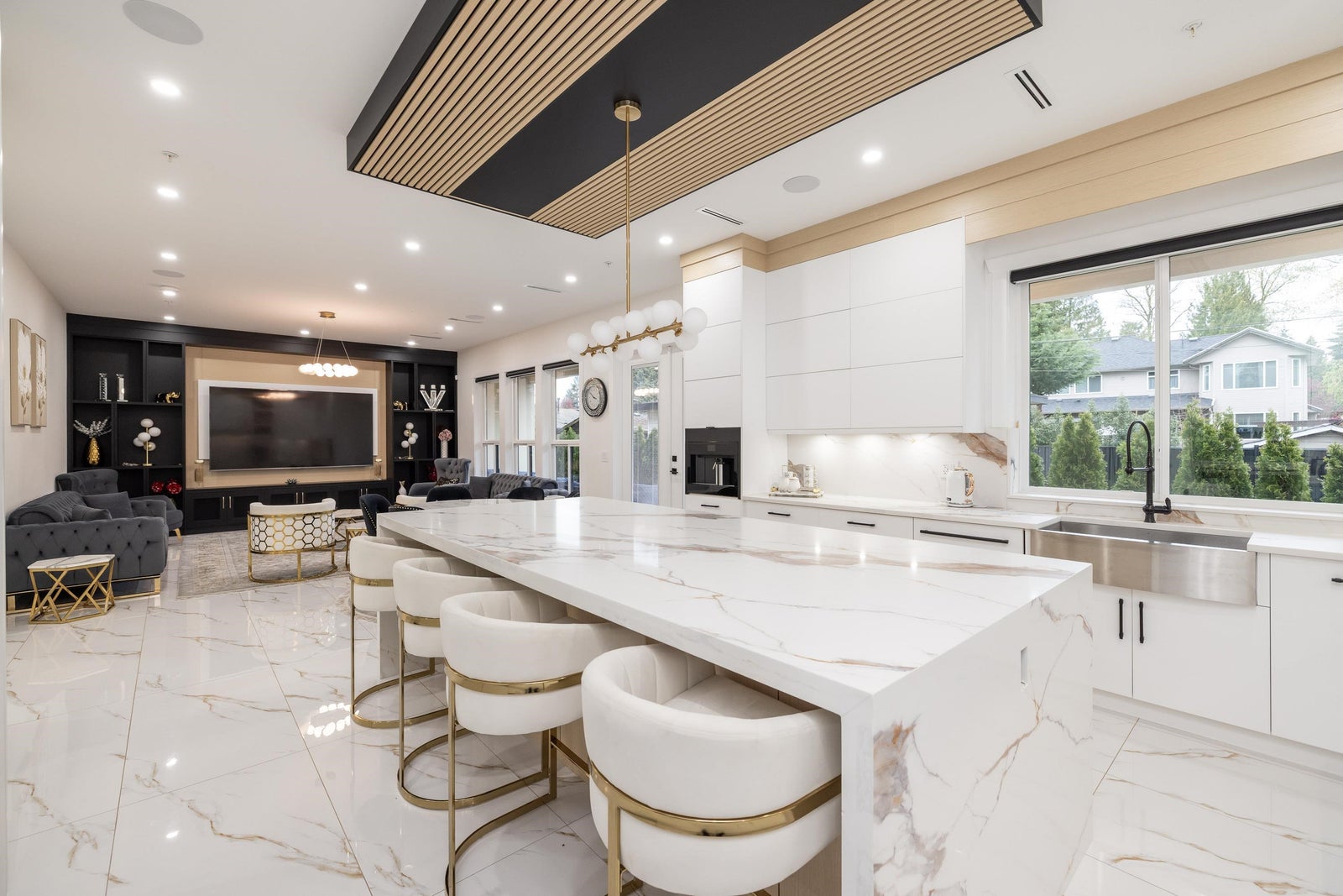 Luxurious design in the desirable & sought-after neighbourhood in Birchland Manor!!! Stunning 2024 custom-built home with 8 bedrooms, 7 full bathrooms, and 2 mortgage helpers on 5,557 sqft thoughtfully designed living space, offering comfort and functionality. Featuring high-vaulted ceilings, high-end finishes, sleek contemporary design, fenced backyard, in-house theatre room, and spice kitchen. The home also features a spacious 2-bedroom legal suite with separate laundry, perfect for extended family or mortgage helper. Complete with a double garage, EV charging and a family-friendly layout, all in a prime location close to parks, schools, and everyday shopping. This one won't last long!